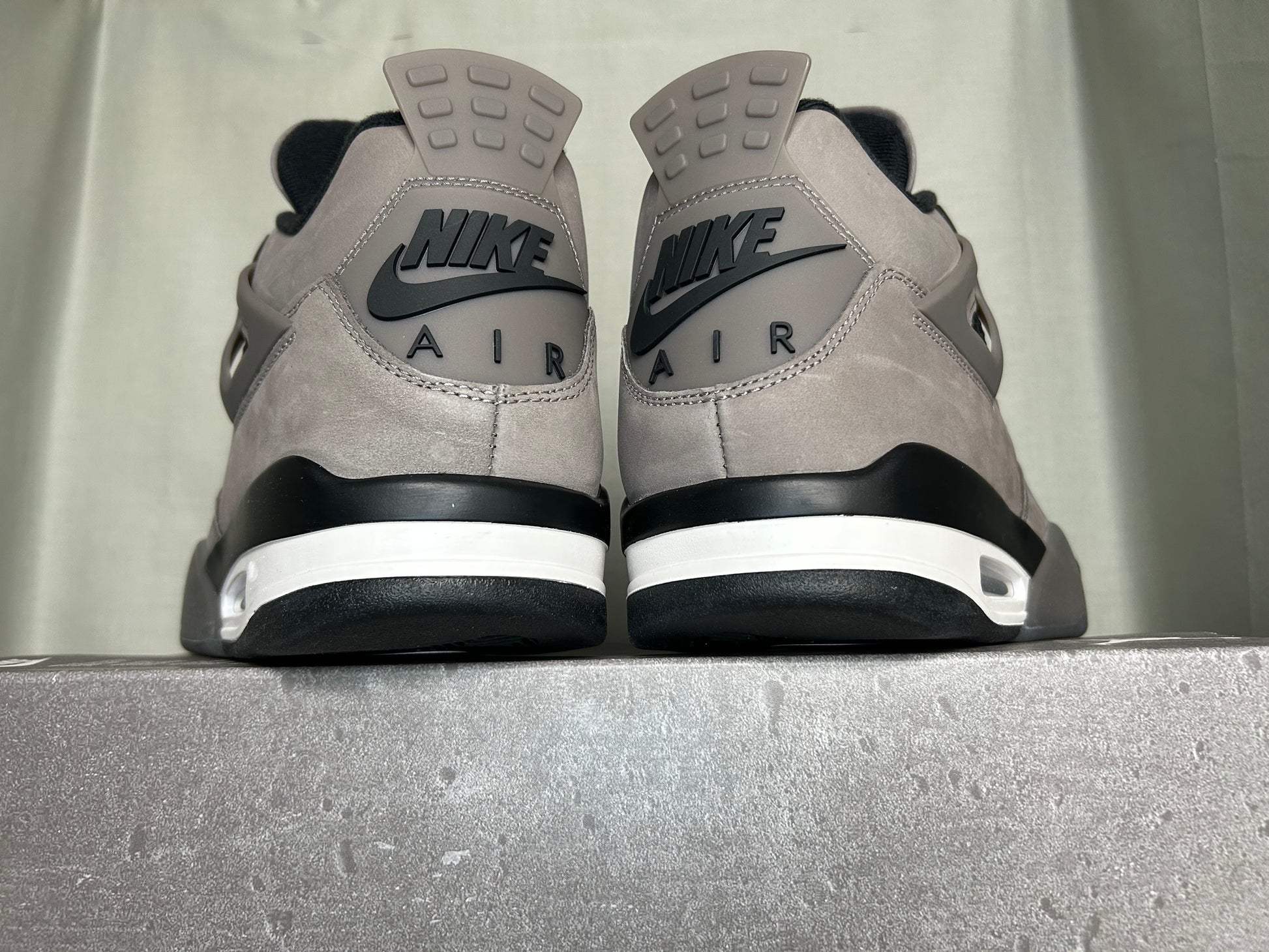 The Air Jordan 4 Retro 'Cave Stone' rolls out a smooth nubuck upper with black pops on the side panel netting, molded eyelets and collar lining. A Jumpman emblem lands on the Flight-branded tongue tag, while the Nike Air logo decorates the molded heel tab. A white-and-black foam midsole undergirds the classic design.